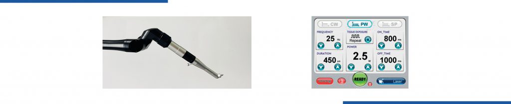 The CO2 laser is a system controlled by a sophisticated microprocessor providing a power up to 15W on the tissues.